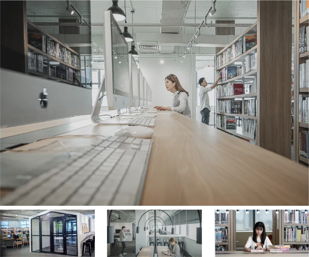 This shared working space is dedicated to guest lecturers in the industries, as they teach classes or conduct talks to share their knowledge and experience with the students. Additionally, in support of our graduates and their entrepreneurial initiatives, this space is also open to our alumni if they wish to have a personal workspace or a studio of their own.