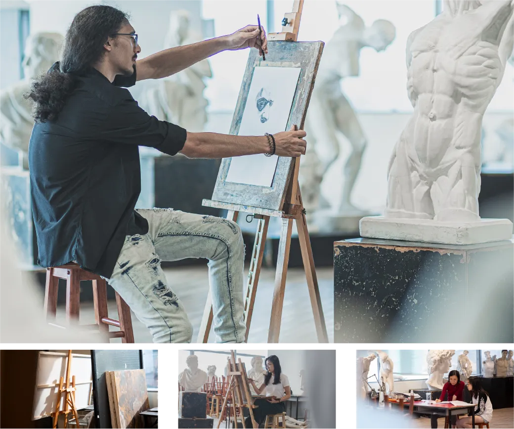 The Drawing Studio provides a conducive inspiring environment for artists to thrive in, ultimately bringing out their best artistry and impression. Students will be able to build the foundational art skills and knowledge it takes to bring out the finer details in art with various modes of reference provided.
